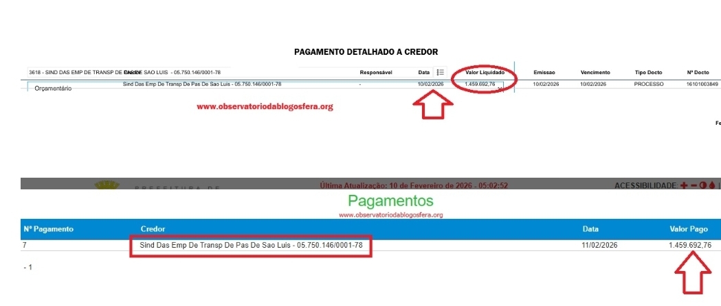 O Site Observatório realizou uma investigação na qual aponta que o prefeito de São Luís, Eduardo Braide (PSD), mandou pagar às pressas o valor do subsídio que estava faltando, referente ao mês de janeiro de 2026, que estava atrasado, no valor de R$ 1.459.692,76 (Um Milhão, Quatrocentos e Cinquenta e Nove Milhões, Seiscentos e Noventa e Dois Reais e Setenta e Seis Centavos).